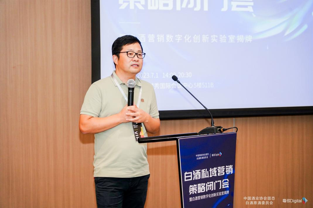 2023 年7月1日,白酒营销数字化创新实验室揭牌暨白酒私域营销策略闭门会在广州举行。中国酒业协会固态白酒原酒专业委员会理事长、泸州老窖前董事长谢明出席活动并致辞。本次活动还邀请了知名白酒企业、资深业界人士、数字化技术专家,以及众多媒体从业者出席,大家共聚一堂,共同探讨白酒数字化发展趋势,共同展望了美好前景。