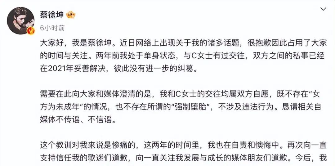 燕京啤酒和蔡徐坤合作已久。2021年至2023年,蔡徐坤一直是燕京啤酒的代言人