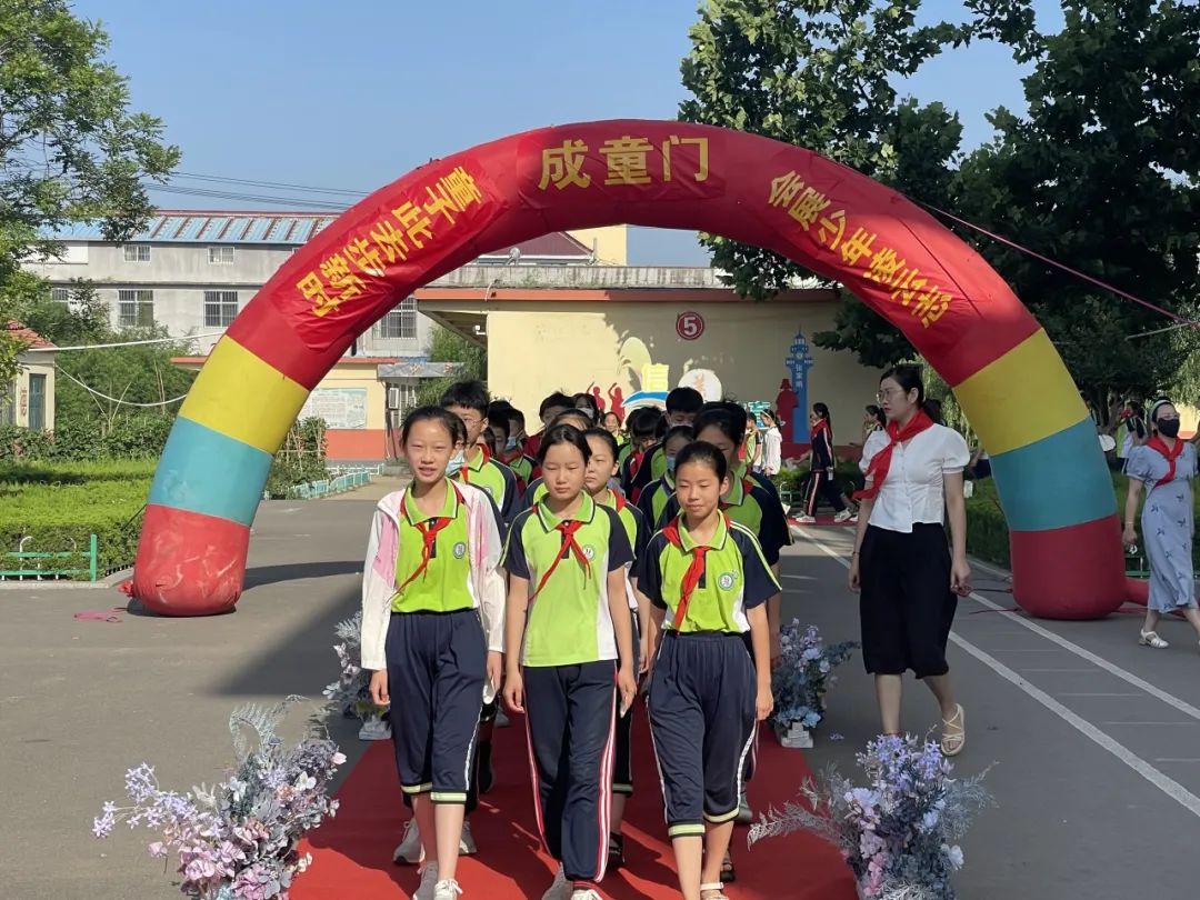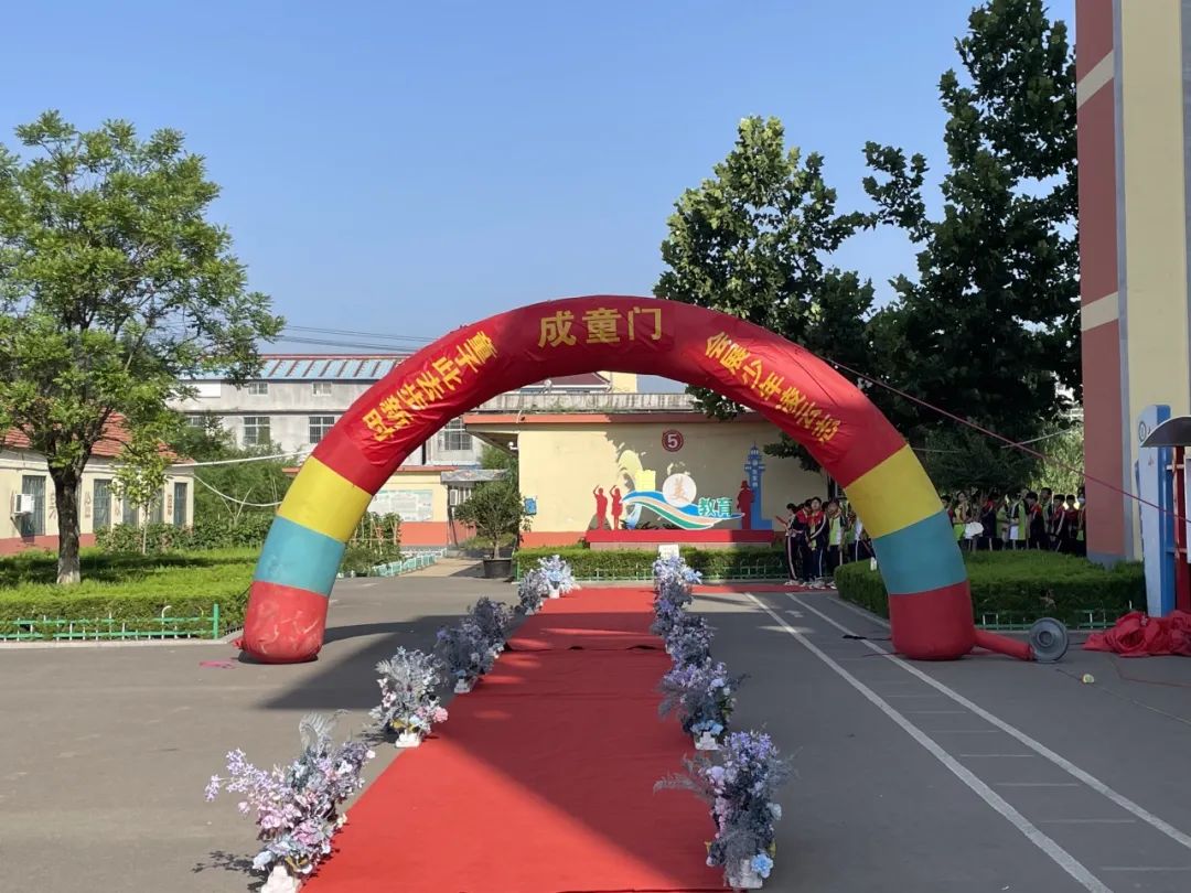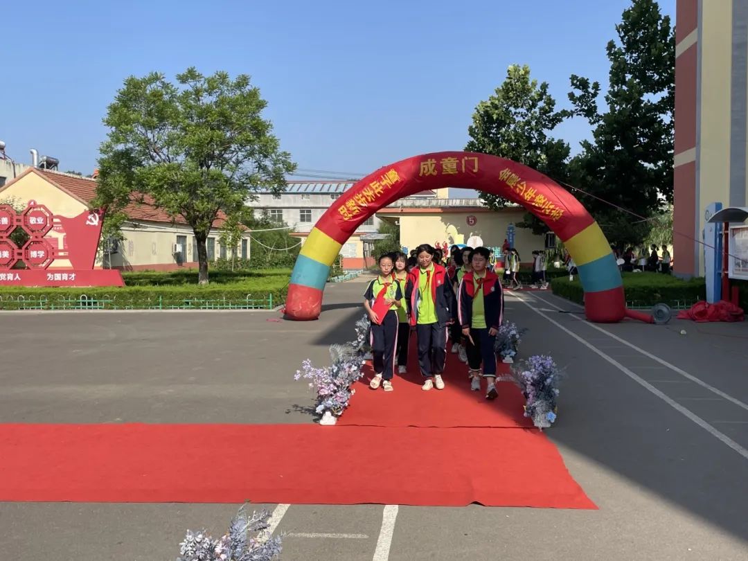 首先,孩子们在班主任的陪同下,穿过大道铺红的成童门。步过这成童门,孩子们就从童年走向了少年。自为少年,当要成为一道明光,把自己的未来点亮。