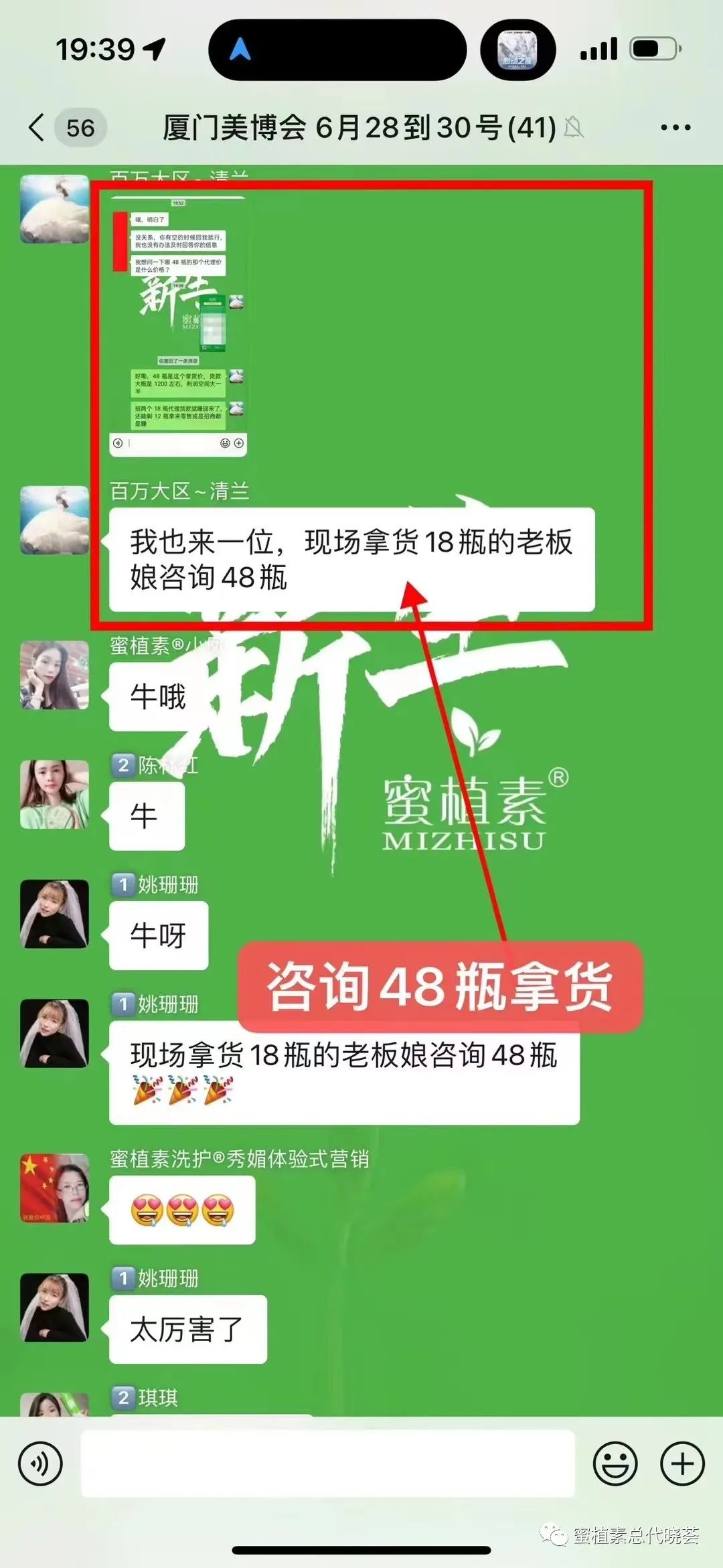 现场拿18瓶的老板娘继续咨询48瓶拿货