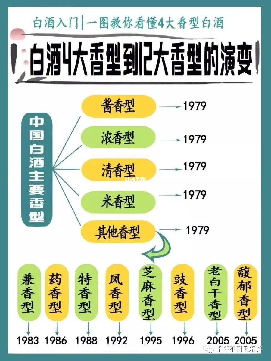 中国白酒的香型区分最早是从1979年第三届评酒会开始提出并发展至今的,在1963年第二届评酒会时首次设置评酒标准,按照标准进行评分,由于当时没有香型区分概念,所以所有的白酒都统一进行盲评、打分、写评语。然后有人不认可评选结果,理由是感官相差较大的应该区分开来进行评比,后来在1979年评酒会上就提出了白酒的四大香型,分别是浓香型、酱香型、清香型、米香型以及其他香型。