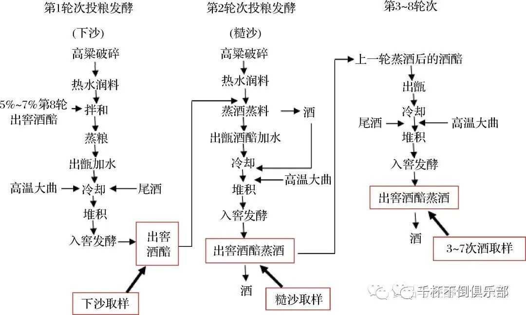 翻沙,这就是属于投机取巧的做法。一般的方法是用坤沙酒最后一次取酒后剩下的酒糟,加入一些新的碎高粱和曲药,进行酿造出酒。这种工艺的周期更短,酿出的白酒,带有一点点坤沙酒的口感和香味,但是经不起推敲和品鉴。