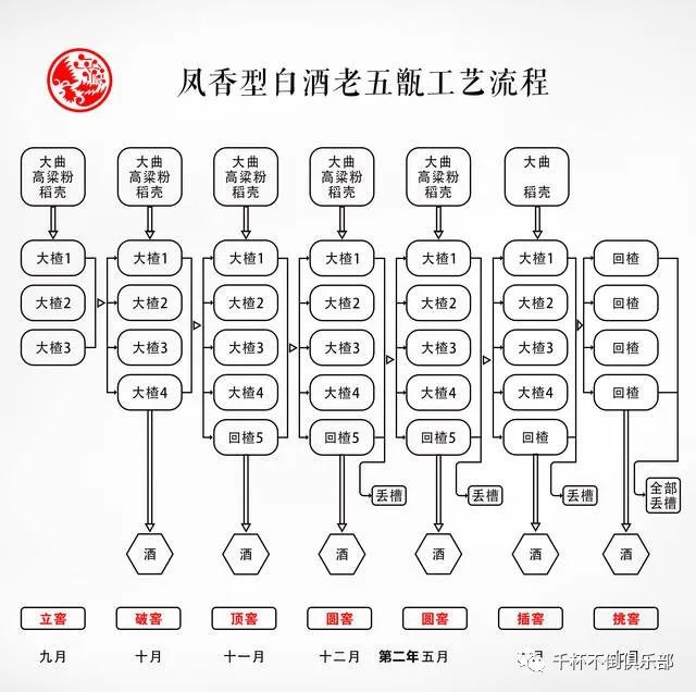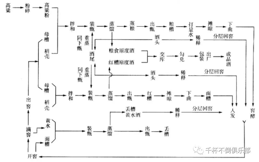 同时因为在发酵上也采用了类似酱香型白酒的高温堆积,高温发酵等特点,所以也同时具备了酱香型白酒的焦香及糊香。在生产工艺上又采用了独特的清蒸蓄渣工艺,先将粮食清蒸,然后在与蒸酒后的酒醅混合加曲入窖池发酵。