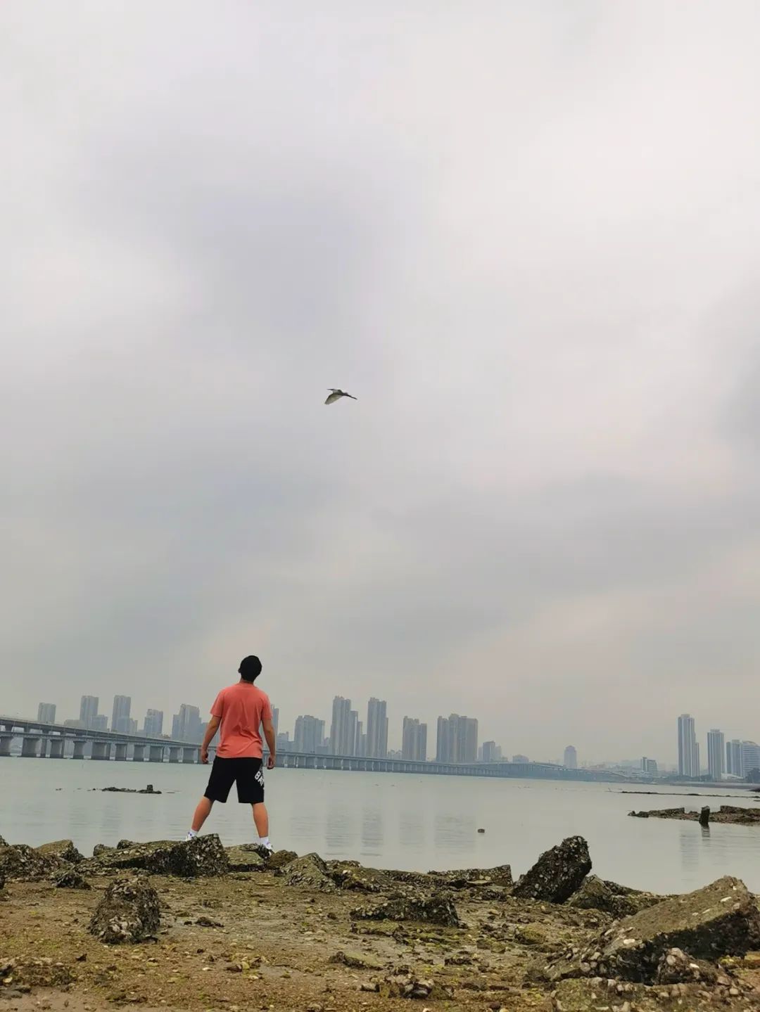 时至正午,墨墨同学也赶到了南湖门口与我会合。中午俩人好好吃了顿饭,谈了谈心,下午他把我带进他的学校,回他寝室换衣服时,我竟然发现我们两个大学寝室穿的拖鞋居然一模一样,洗面奶用的同一种,平常用的篮球居然也是一模一样!这是什么样的缘分!和好兄弟两个人打单挑一下午,这简直是心里不可多得的喘息机会。晚上尝了尝嘉兴特色粽子,带我逛了逛他也即将毕业的校园,之后更是骑着小电驴亲自把我送到了高铁站。高一认识的好兄弟,我们这奇妙的缘分还会继续啊......之后一周单位同事们约球,那次去的人出奇的多,我也是想着好好干一场释放一下情绪。结果打了没半个小时,落地一脚踩在别人脚上,直接把脚崴成了馒头。虽然当时处理妥当,但是也根本无法下地走路。没办法,当即在球场下单:护踝和拐杖。那一晚,心里和身体上的煎熬使我难以入眠。放从前,我可能还有个可撒娇的人;而且不想让父母跟着操心,我也就没说。煎熬的一晚上过去之后,想到我还有个早就定好的五一厦门游,车票酒店都订好了,我心一横,说就算拄拐,也必须去。到了出发的日子,恰好是受伤第四天,也就是脚最肿的时候,由于我买的是站票,我专门带了小马扎,又拄着拐,一路晃晃悠悠上了车,找到对应车厢连接处,把拐往旁边一靠,拉开小马扎一坐,漫长的五六个小时就开始了。到厦门北站时已经是晚上十点半了,和朋友顺利碰头后,便前往了我们不知道订在哪里的民宿。说不知道在哪里,是因为到地方一看,高低错落的各式各样房子全是民宿,像是从未见过的那种梦幻中的小村落一般,小巷子穿插其中,有高一点的至少从外面能看到名字,我们订的这个连名字都看不到。外边的路上种满了只有热带附近才有的棕榈树和其他特有植物,又解锁一种未曾谋面的自然景观。在民宿群中找了好久,问了一位大姐才终于找到了夹缝中的住处。这家还是挑了很久才找到的五一期间相对便宜一点的民宿,厦门核心岛上的酒店一晚七八百起步,我们实在是囊中羞涩。再加上我拄着拐,在当时也不挑了,能住就行。虽然外面看起来很破,但入住程序里包括很多派出所防诈骗宣传的东西,整的还挺正规,多少也能安心一些。终于住下后,简单安排了下第二天行程,我们很快倒头睡去。太阳早已高挂时,我们才慢悠悠起了床。先下楼品尝了闽南特色的猪脚饭,然后直奔集美学村的十里长堤。坐着地铁,本是在地下的车厢忽的由黑暗转向了光明,眼前豁然开朗,海、桥、堤,被同时绘于同一幅唯美的画作之中。这时耳边同步响起了地铁中的播报:“蓝天碧海飞白鹭,波光粼粼泛渔舟。海景画卷,尽在眼前。厦门地铁带您感受城在海上,海在城中。”这边的桥与那边的桥,都长久地伫立着,迎着波涛与海风,凝视着对面以海天相接为背景相向而行的列车。穿越了一整个长堤,列车重新回到地面下,到站。出站后,我们踩着单车去到那长长的堤岸。朋友想在远岸道路走走,而我扔下了拐杖,拿上了自拍杆,毅然决然地去到了岸边。路上有很多大大小小的石头,泥泞的软沙,我一步步提起肿胀的脚踝,每走一步都会有如同深深浅浅脚印般深深浅浅的疼痛。阴沉的天空并不能阻挡我寻找无数角度去拍出好看的长堤。对美好风景的向往,指引着我忽略疼痛,穿过泥沙,如同信仰一般来到这里。偶尔几只海鸥掠过岸边,飞至水面再向上,我伸出双臂,拥抱满眼的明秀,拥抱海风的呼吸,拥抱海鸥的自由。霎时间回眸,背后不远处的铁道上跑过一趟车身满是漫画的地铁,说时迟那时快,当我刚从惊叹车厢的帅气回过神来想要录像时,它已经跑远了。