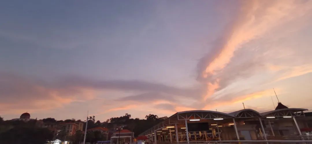 回到住处,看完最后一场喜剧电影,旅行理念不太一样的我俩,加上之前连鼓浪屿的票也没能买在一起,于是我决定推迟一天到5月3号返回,5月2号去鼓浪屿,而他则选择了5月2号上午正常出发返回。送走了他,我也只身前往自己订在另一处的民宿单间,几乎是我至今所有旅行住所条件最差的一个。好在,那样的我心里却仍存有一丝庆幸:有一个能睡觉的地方,挺好了。夜游鼓浪屿的票从下午五点左右可以开始去码头坐轮渡。鼓浪屿真是一个神奇的地方,它不仅仅在地理上独立于厦门岛存在,于我而言,鼓浪屿的经历仿佛也独立于我的整个厦门之旅而存在。这种兆头从刚上岛就开始显现,刚下轮渡,天空便开始出现如金凤凰一般的晚霞,绵延千里。