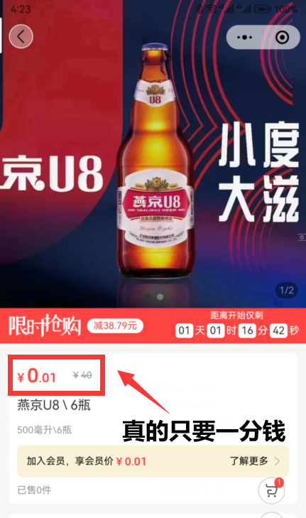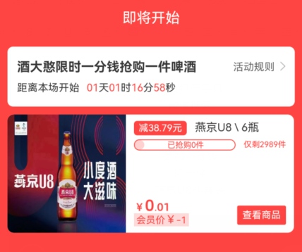 巡场:今天下午5:40一分钱抢啤酒!继续抢!