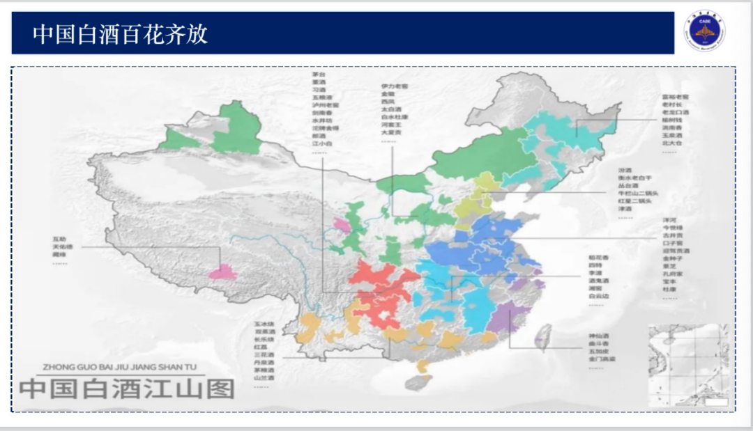 有佳泉之地必有佳酿,产好粮之地必有好酒,好山好水出好酒,中国白酒开放式的生产工艺,高度依赖自然环境和微生态的长期驯化,基于农耕文明的迭代演绎,物竞天择的自然选择,在人与自然的和谐共生中,经过长期的淘汰优选、技艺的改良传承、天人合一的共酿,并以近乎正确的方式守望上苍的恩赐,形成了独特的生产工艺和产品风格,并依托区域的自然生态和资源禀赋得以生存和发展。正是由于不同地理环境以及不同的酿造工艺,造就了中国白酒品类风格的多元化,从而形成了中国白酒不同的特色产区。