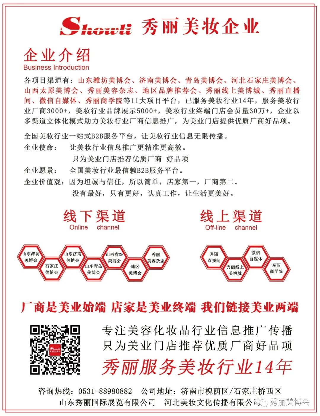 依托秀丽美博会多年的强大数据和资源的沉淀,我们以高品质美业盛会为根本,打造华北美容化妆品厂商与美业终端门店院长商务洽谈的诚信盛会。