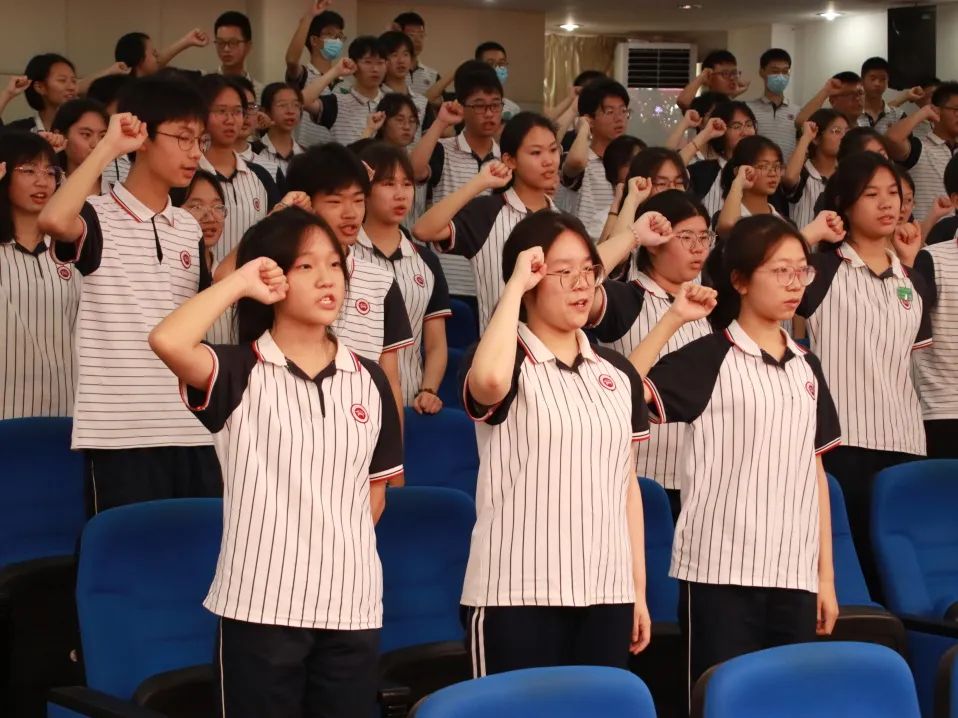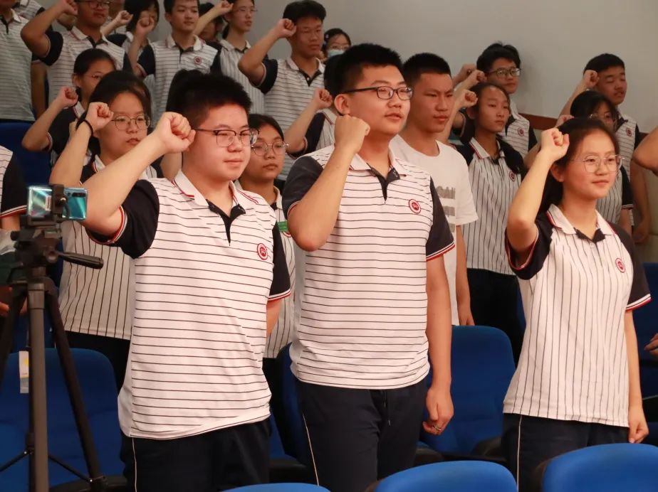 志存高远,意气风发。913班彭静华同学带领同学们,踌躇满志地宣誓:我将永远铭记恩师的教诲,永远不忘母校的嘱托,用自己的青春和热血,谱写人生壮丽的诗篇,用自己的智慧和汗水,报效祖国和人民。