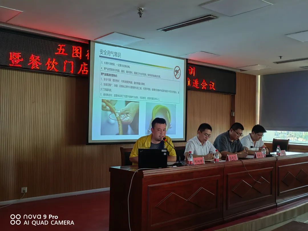 燃气安全事关人民群众福祉,关系到经济社会发展大局,为进一步吸取近期燃气安全事故教训,有效防范和遏制安全事故发生,切实保障辖区人民群众生命财产安全,7月5日,五图街道组织召开餐饮行业燃气领域安全培训会暨餐饮门店液化石油气瓶整改推进会议,会议邀请了新奥燃气公司安全顾问刘炯明进行培训。各社区主任(包括城市社区、工业园区)、各包靠机关干部、各小区网格员、各餐饮业主参加培训。