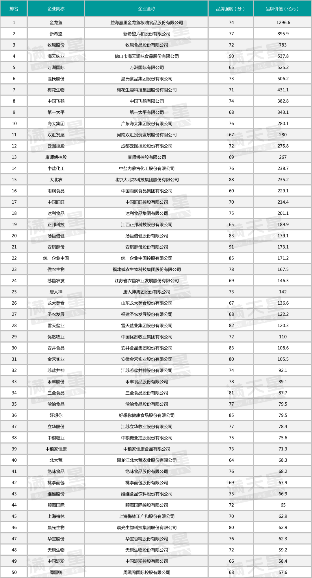 6月29日,《2023中国食品行业品牌价值50强》(以下简称“榜单”)发布。榜单依据《品牌价值评价多周期超额收益法》(GB/T29188-2022),评选出2023年消费品工业品牌价值食品行业品牌价值50强。金龙鱼、新希望和牧原股份位列前三。
