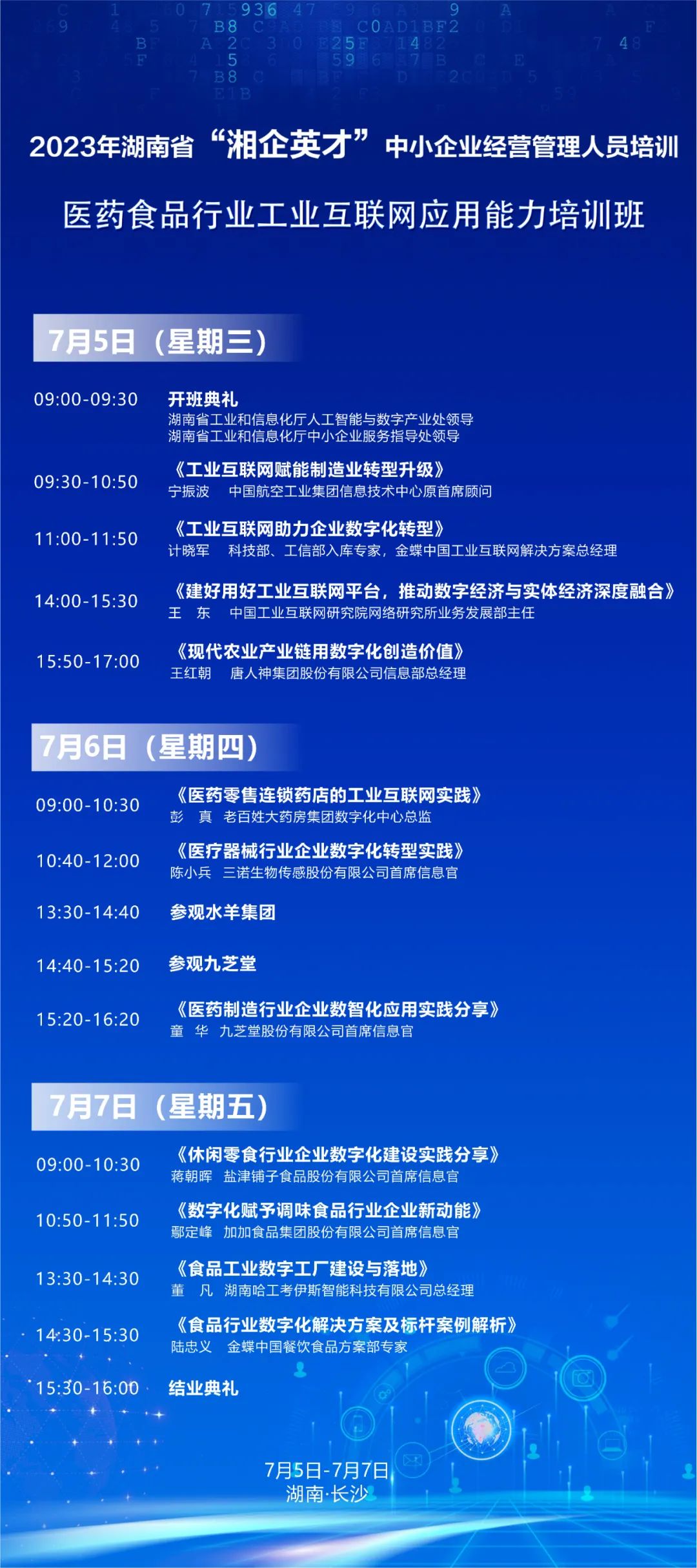 为深入贯彻党的二十大关于促进数字经济和实体经济深度融合战略部署,全面落实“智赋万企”专项行动的工作安排,聚焦中小企业数字化转型,着力构筑医药食品企业竞争新优势和产业竞争力,7月5日,2023年湖南省“湘企英才”食品医药行业工业互联网应用能力培训班成功开班!