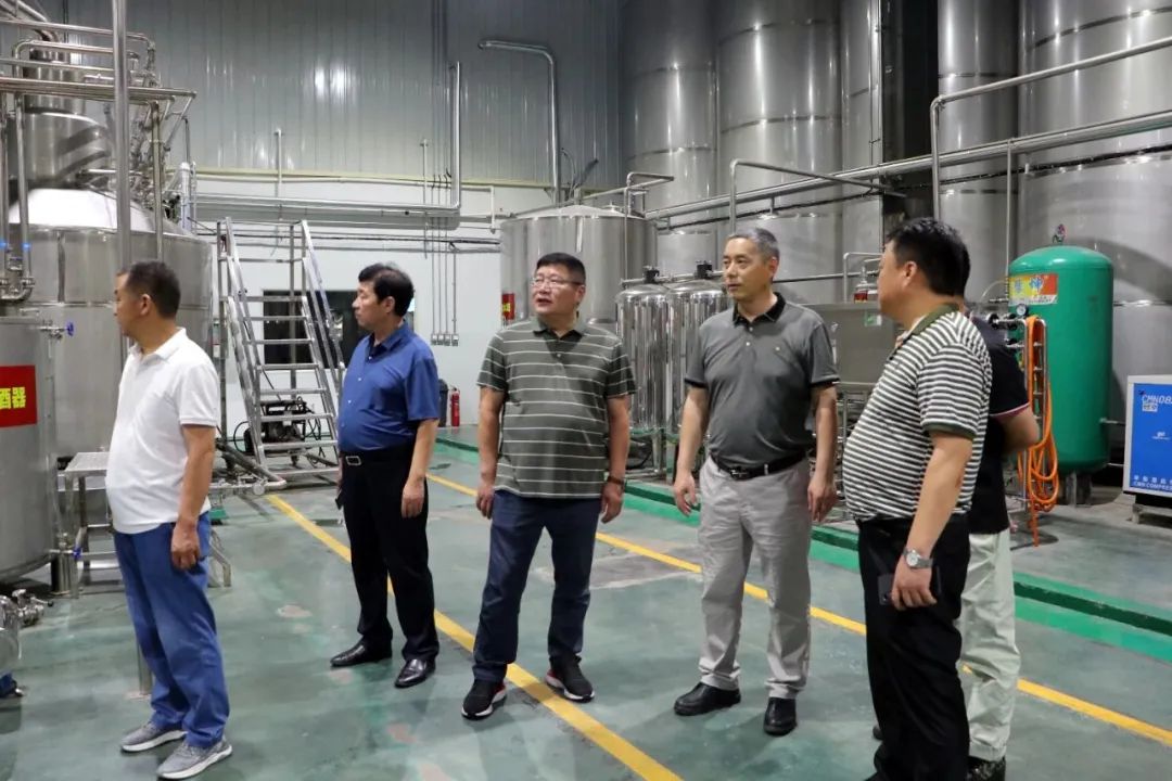 在酒业生产车间,赵守根向王化斌会长介绍了王仁和酒的原料及发酵过程。从260米以下深井取水,以米线为原料、用洗米水浸润,红曲为主、多曲混用,不添加任何香精香料,是一款纯粮食酒。