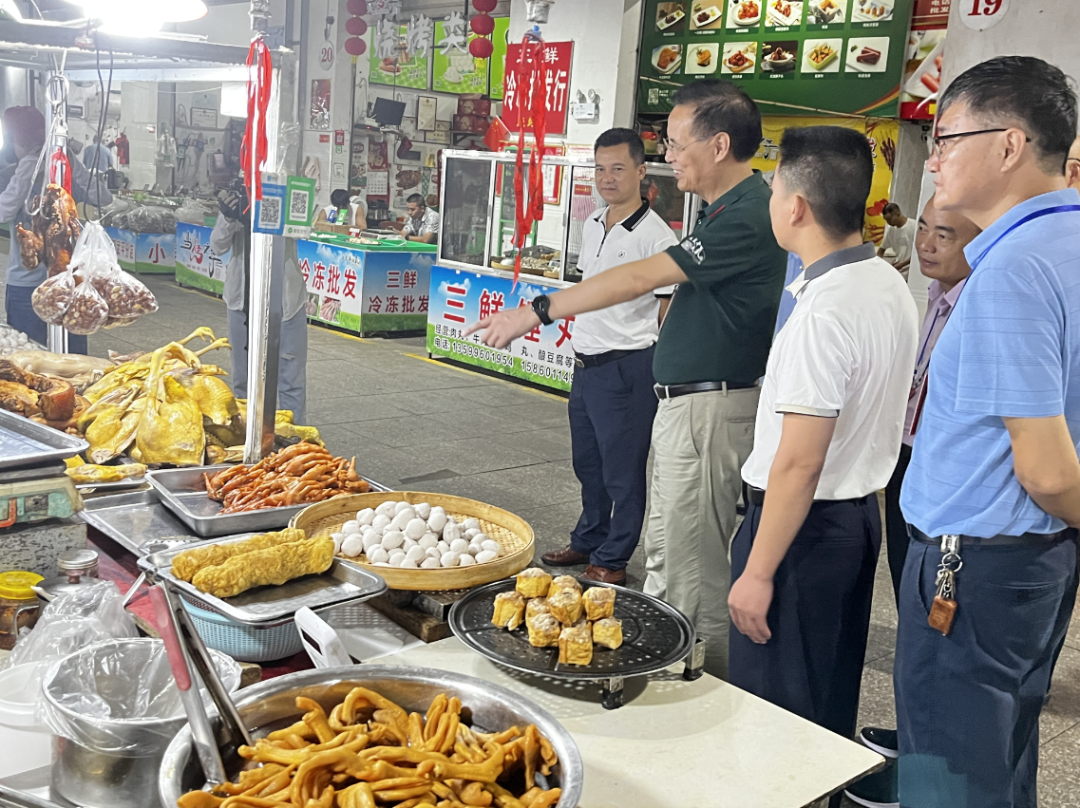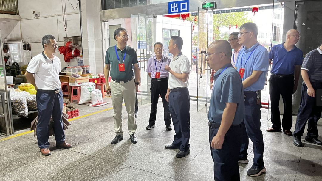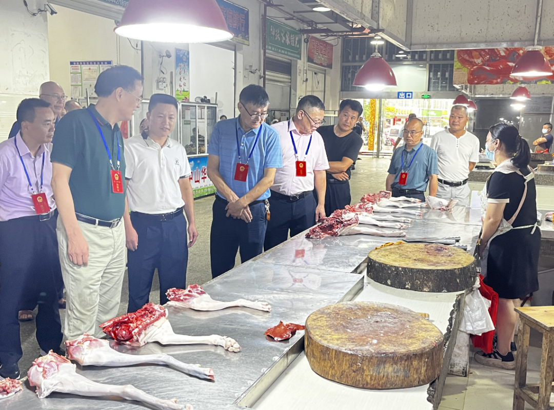 刘主任一行先后来到鲜肉区、熟食区、海鲜区、副食区等,询问了解产品的溯源产地、产品质量、蔬菜农残检测、猪肉“两证”查验等情况,充分肯定了东门农贸市场所作出的成绩,确保了广大市民的食品安全。