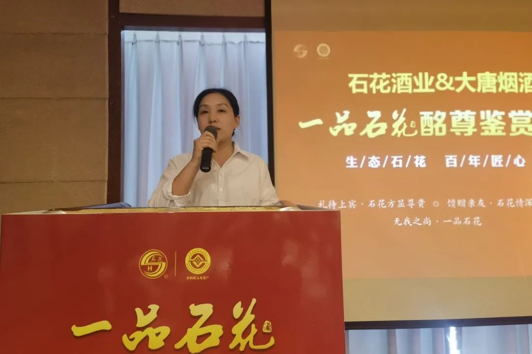 肖海君代表石花酒业在酩尊鉴赏会上致欢迎辞。她表示,石花酒业153年来只做一件事,那就是酿好酒,就是坚持把酿酒做到更好。同时她强调,石花酒业将继续坚守“质量大于市场”的庄严承诺,始终坚持为消费者提供更加生态、健康的白酒产品。