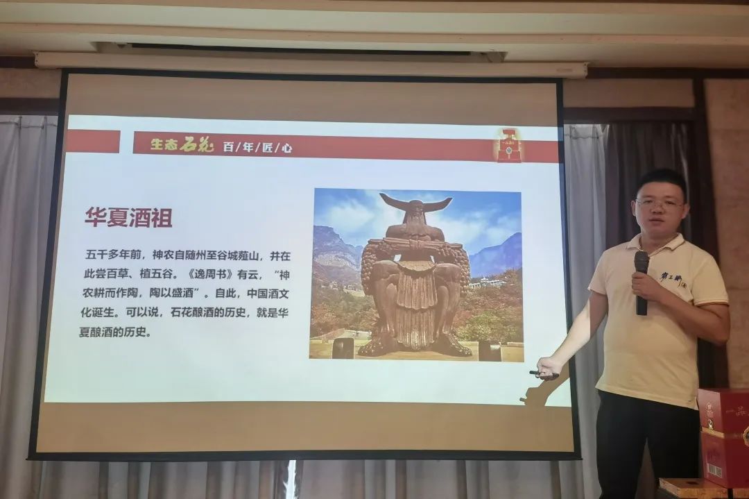 枣阳区域石花酒品牌代言人陈琳为嘉宾介绍了《石花酒——生态石花 百年匠心》的品牌内涵。现场嘉宾们更加了解了石花酒业的发展历程及取得的荣誉,熟悉了石花酒的楚国宫廷酒、霸王出征酒等天赐尊贵的“历史十二身份”和始终坚守的“甜心水、放心粮、红心曲、匠心酿、真心藏”的“五心级”酿造标准。