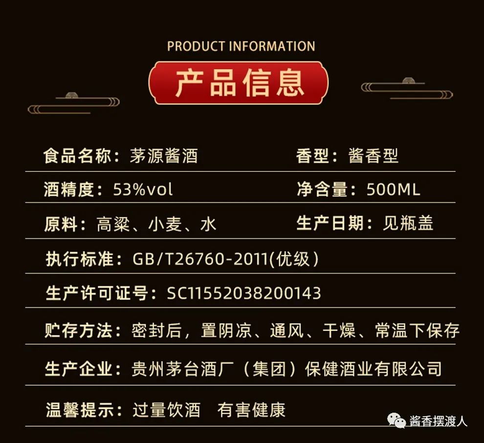 茅源酒酒体清亮透明,酒柱晶莹剔透,以时间酿酒,愈加醇厚柔和,入口酱香明显,绵柔醇和,幽雅协调,回味悠长,好似浓郁壮阔的人生滋味。优质的酿造原料,特殊的地貌水源,用自然传承经典,品尝时光的味道,用传统坤沙级工艺。端午采曲,重阳下沙,两次投料,八次发酵,九次蒸酿,七次取酒.....历代酿酒人技艺、匠心的代代传承、每一道工序只为呈现经典酱香。