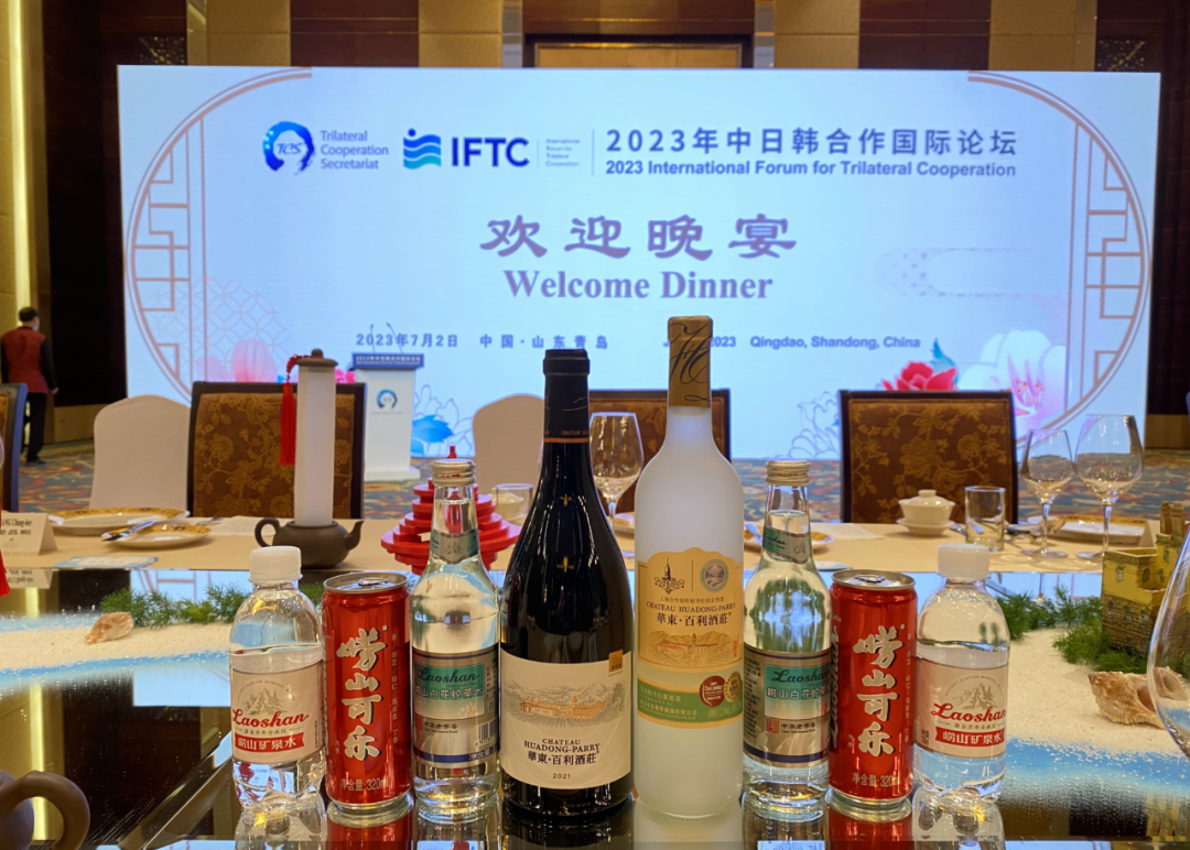 经中日韩合作国际论坛承办方授权,华东·百利酒庄新酒莎当妮干白葡萄酒及黑皮诺干红葡萄酒作为本次国际论坛官方指定用酒亮相宴会环节,以高标准、高质量、高品位演绎中国葡萄酒魅力,展示了华东作为中国葡萄酒行业领军企业的实力,深受中日韩三国与会嘉宾的高度认可和赞誉。
