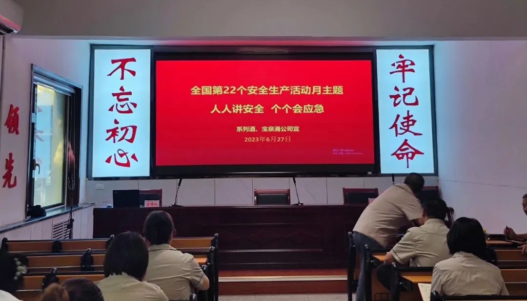 “安全责任重于泰山”,安全工作任重而道远,只有起点没有终点,我们要把每个月都当做是安全生产月,每一天都当作是安全生产日来看待。系列酒、宝泉涌公司将继续以“安全生产宣传月”活动为契机,紧绷安全生产这根弦,持续开展安全生产宣传培训和隐患排查治理活动,营造人人争做安全学习的先行者、安全理念的宣传者、安全行为的践行者的良好氛围。