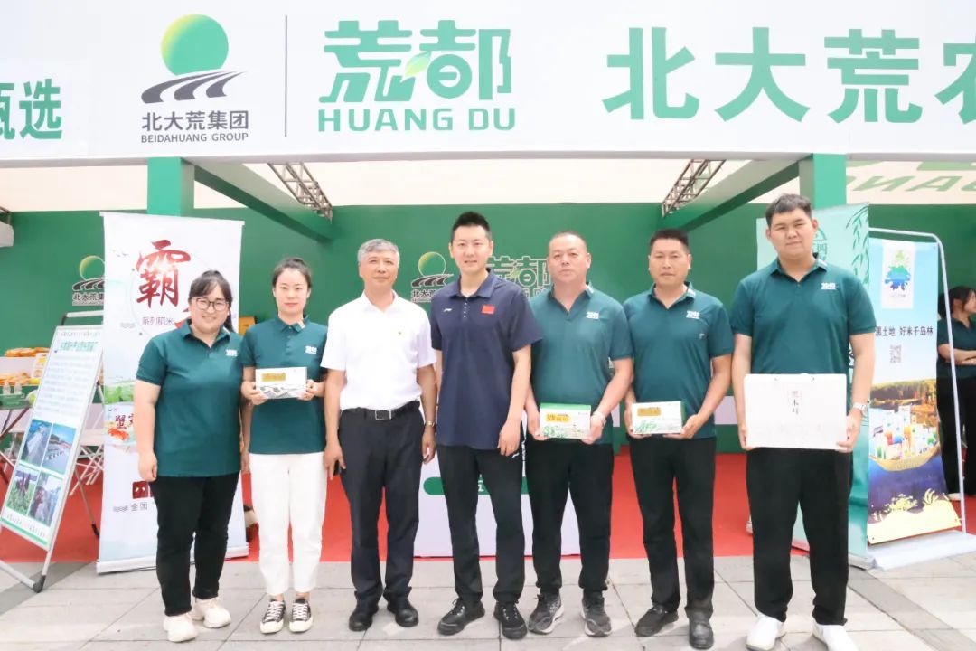荒都农产品展销会于6月27日至30日在牡丹江分公司文体中心广场举行。展销会期间,世界羽毛球锦标赛冠军、哈尔滨工业大学体育部教授陈金,在黑龙江省农业水利气象工会主席高学昌、牡丹江分公司党委副书记、工会主席亓常宏的陪同下,走进荒都农产品展销会八五四农场有限公司展区。