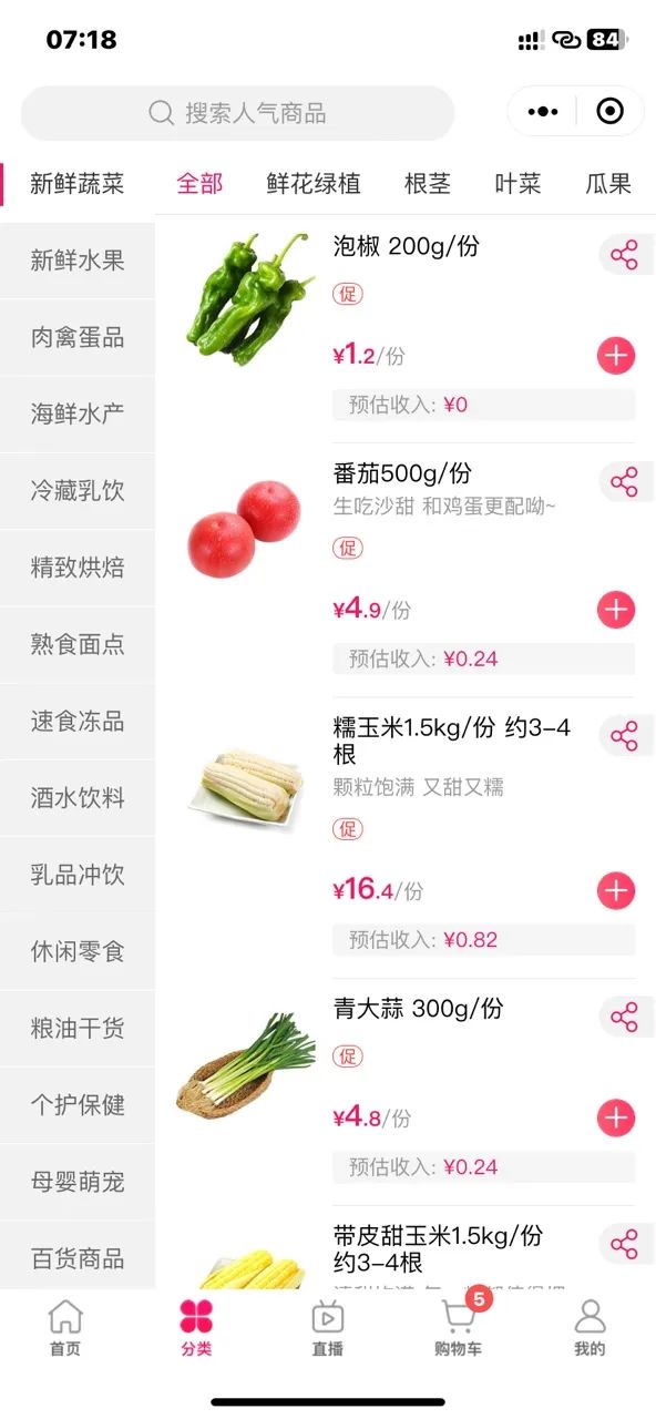 蔬菜、水果、肉类、牛奶、米面、清用等