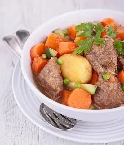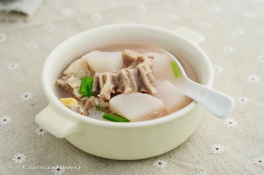 萝卜炖牛肉、包菜炒粉丝、海带筒骨汤、珍珠香米饭