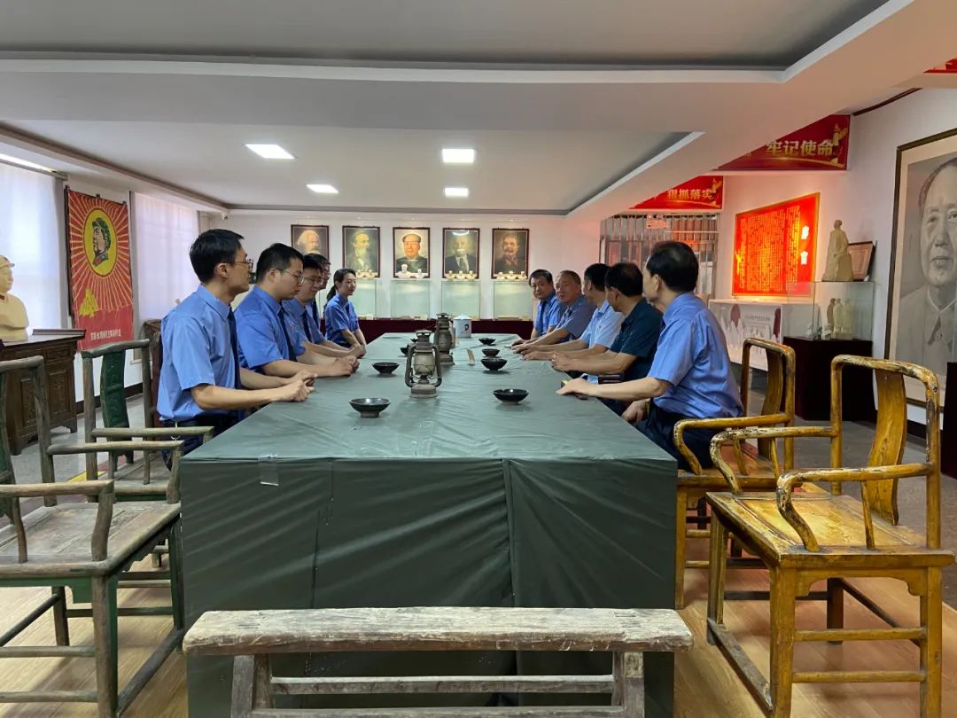 同志们先后参观了老泥池红色印象馆、老泥池退役军人服务中心。老泥池红色印象馆,一段段文字、一张张旧图片、一幅幅场景等犹如一篇篇波澜壮阔的历史诗篇,记录下革命先烈可歌可泣的感人事迹。通过讲解员的讲解,大家回顾革命者的光辉历程,深切缅怀革命前辈丰功伟绩,心灵深受洗礼,并在党旗前重温入党誓词。