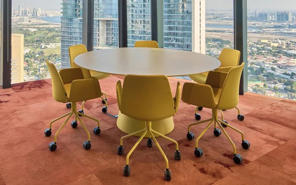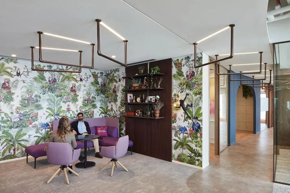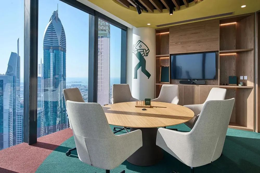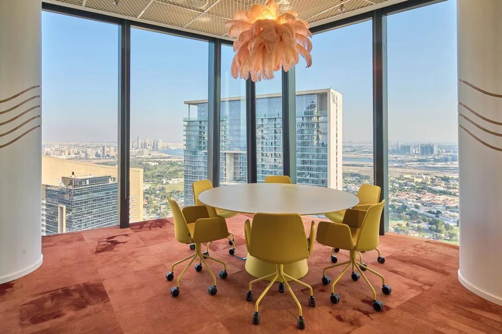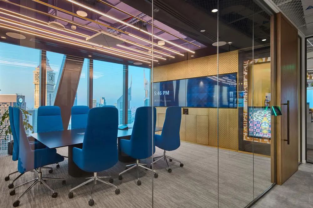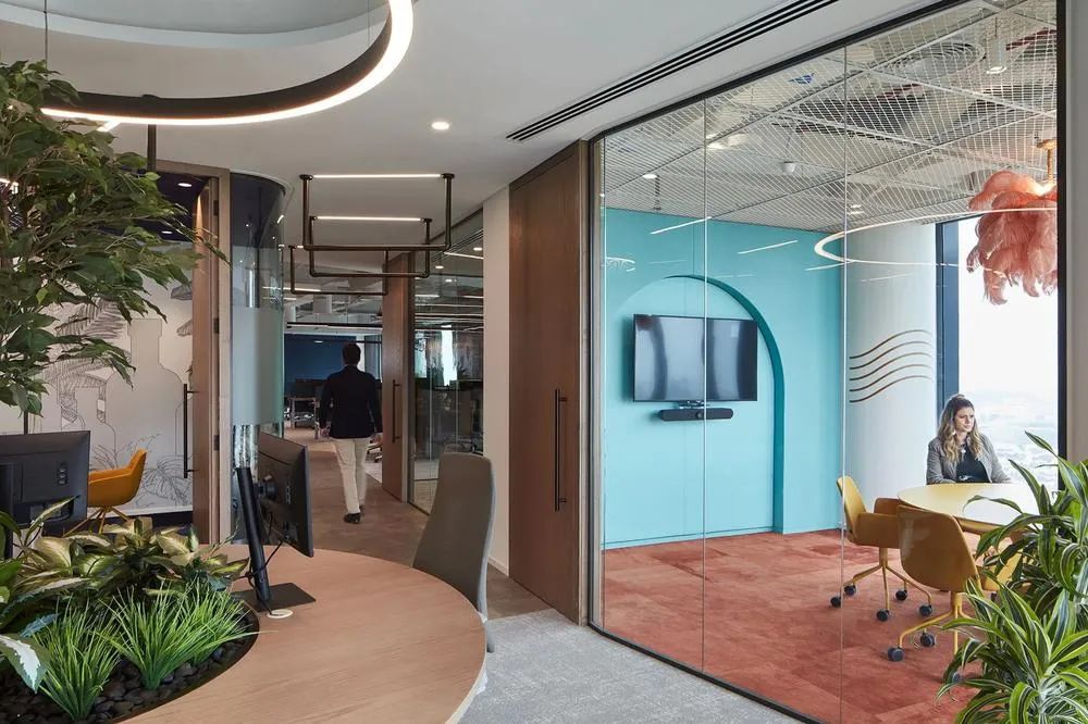 每间会议室都分别从色彩、照明、家具和配饰等全方位策划各自独特的形象,并满足各空间的独特需求。最终,每间会议室不仅展现了每一个品牌的美学、也体现了各自的品牌精髓。所有这些会议室都位于建筑的核心筒规划,从而确保公共社交中心和工作区都能获得最大限度的自然光照。全新的工作场所设计,改善并促进了与客户和员工之间更深入、更紧密的情感建立。