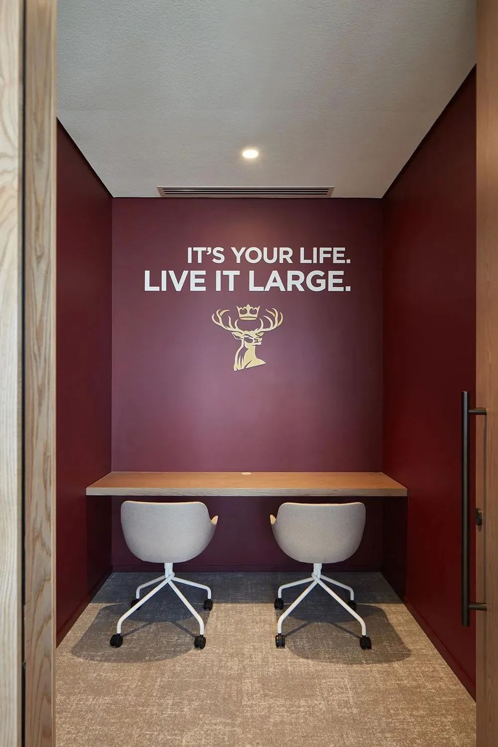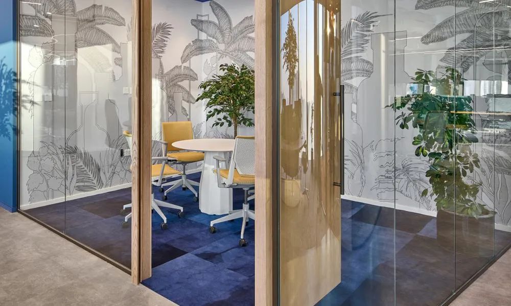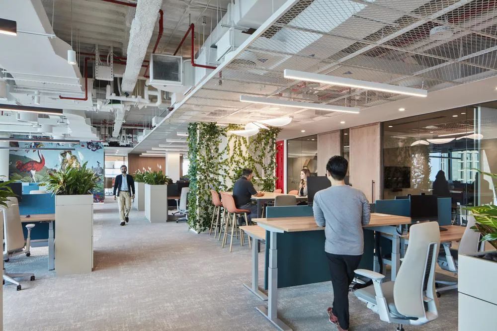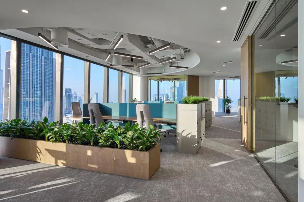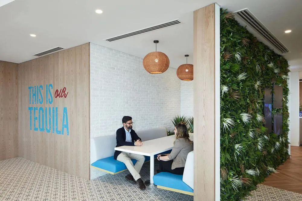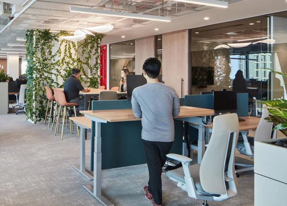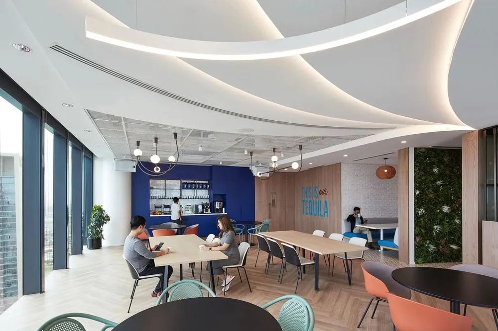 保乐力加对“共创欢乐”的渴望是本案设计的关键驱动力,并基于此创建了可供选择的熟悉且舒适的空间场景。多样化的空间场景能够适配员工不同的工作方式,在这里,安静、专注的地方和协作区域的结合平衡了团队连接与个人分离的矛盾需求。开放办公区工作台沿窗布局并采用半围合的屏风隔断,开敞的玻璃幕墙让这里光照充足,并拥有震撼的城市景观视野。工作区周边绿植环绕、一派生机盎然,如此优越的工作环境怎不令人心旷神怡!