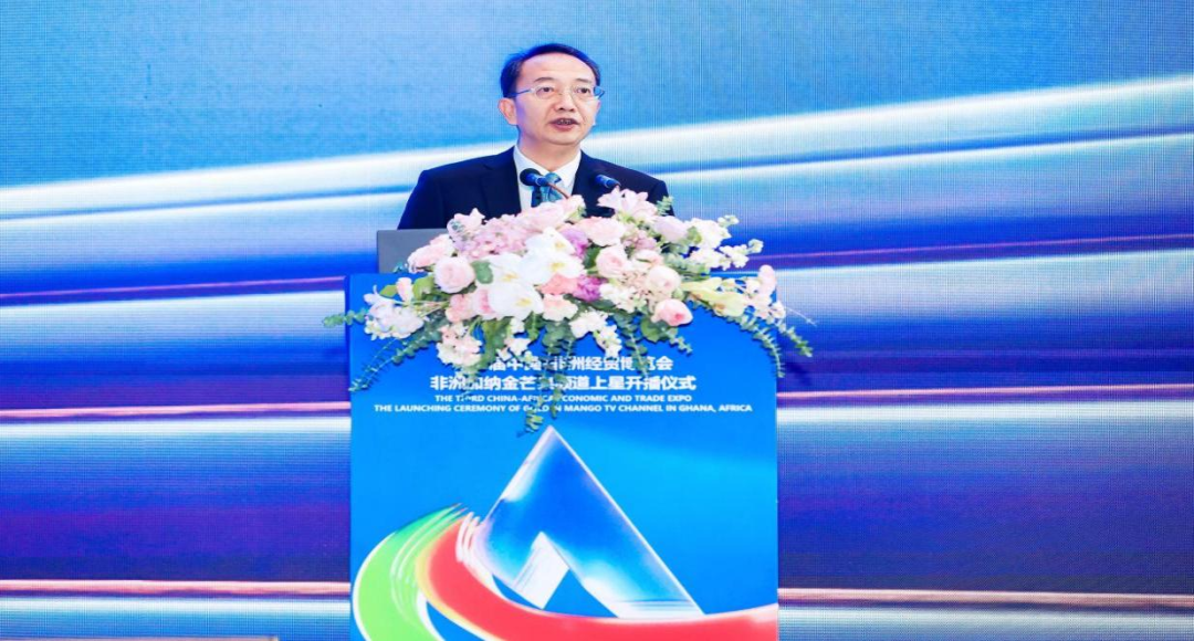 6月30日,由湖南省广播电视局、湖南广播电视台主办,湖南广播电视台国际频道、加纳黄金数字电视台承办的第三届中非经贸博览会“非洲加纳金芒果频道上星开播仪式”在长沙举行,湖南省委常委、省委宣传部部长杨浩东出席并致辞,博茨瓦纳农业部部长菲德力斯·莫劳,埃塞俄比亚妇女与社会事务部部长埃尔戈格·特斯法耶,加纳国家资产管理局局长爱德华·阿夸西·博阿滕,加纳驻华使馆大使温弗雷德·哈蒙德等非洲多国政府官员及驻华使节代表出席,湖南省委宣传部副部长,省广播电视局党组书记、局长贺辉主持开播仪式。