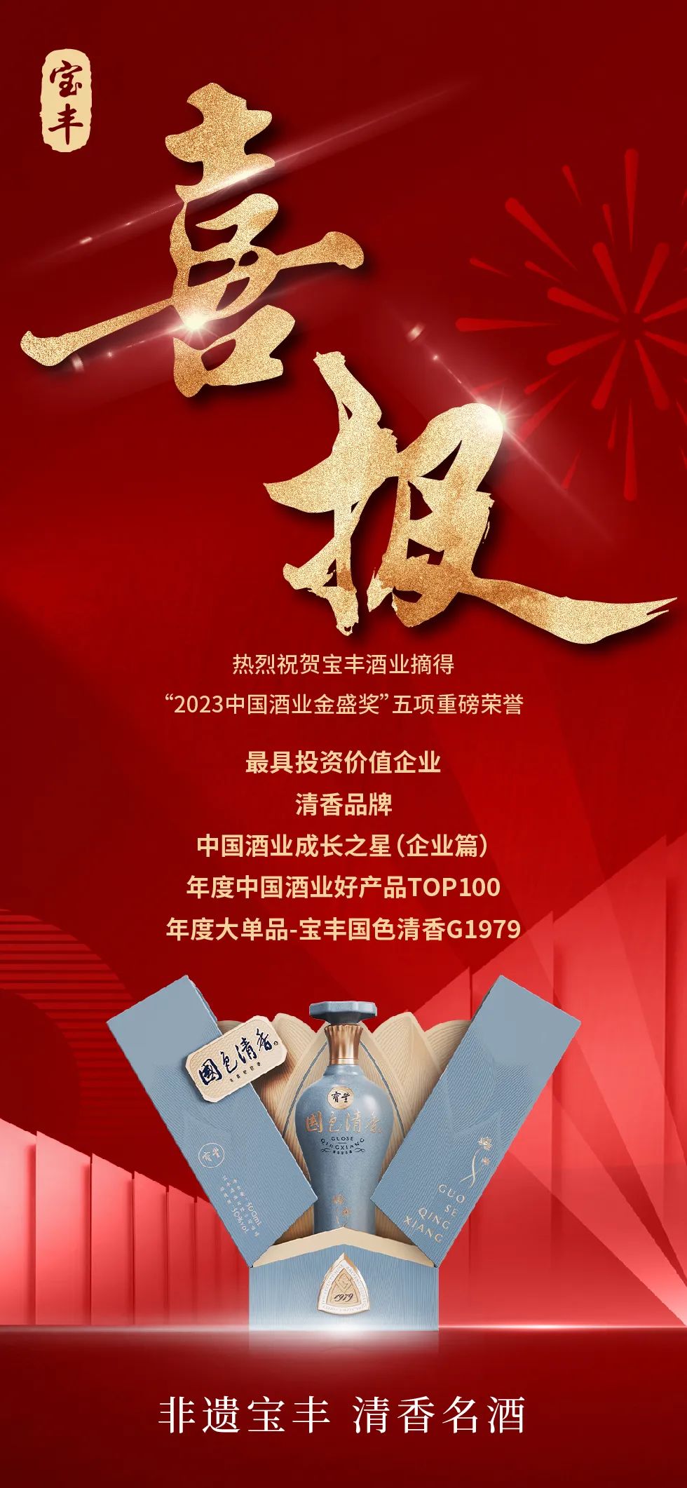 一连五奖!荣耀加冕!宝丰酒业摘得“2023中国酒业金盛奖”五项重磅荣誉!