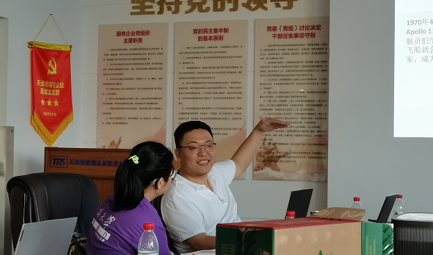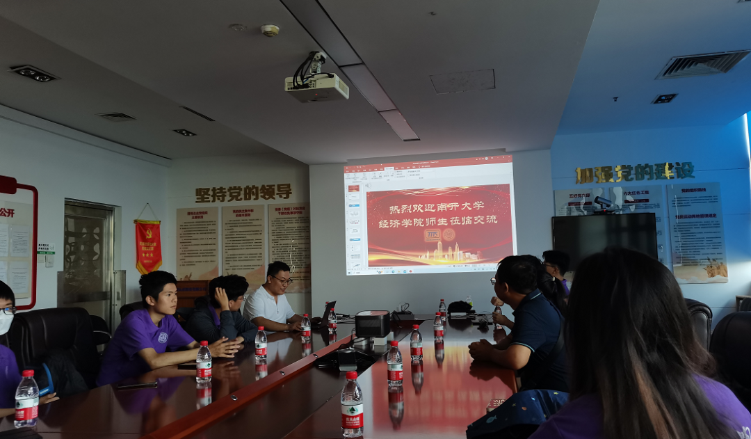 上午11时,实践队来到了天纺大厦的党员活动室,与天纺标IT总监李一㟏总监进行了座谈。李总监结合天纺标的具体情况和前沿的文献与政策,给实践队员上了一场精彩纷呈的专业课。