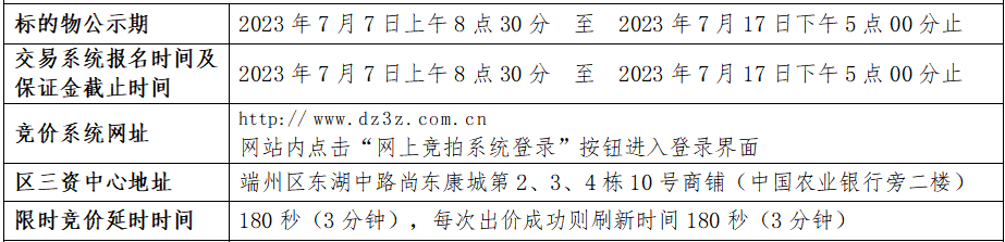 限时竞价开始时间 | 2023年7月18日09点10分开始 |