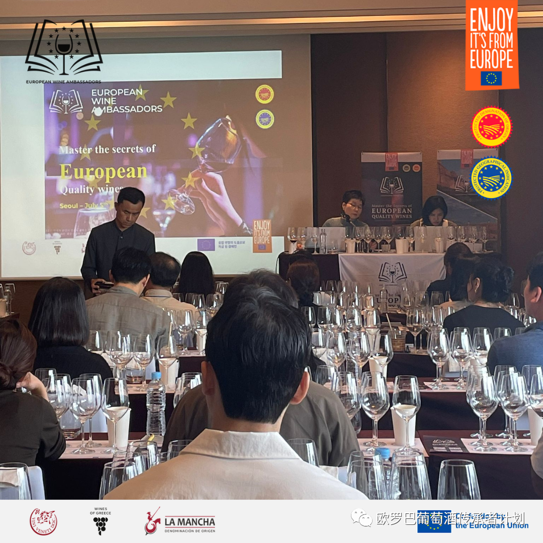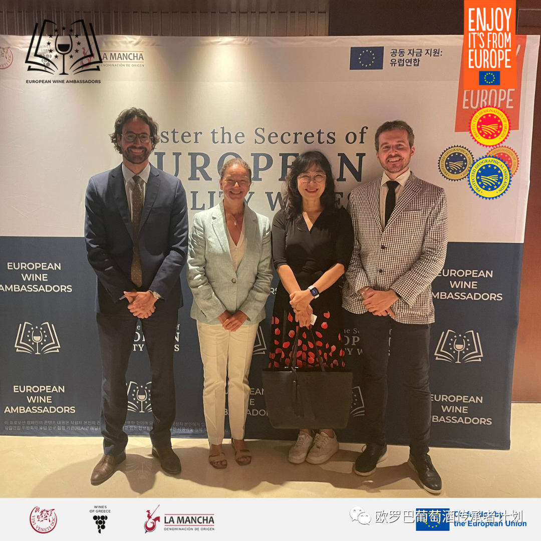欧洲葡萄酒传承者计划(EUWINA)继续旅行,这次去了首尔,有56名参与者参加了这次大师班。我们很荣幸邀请到了西班牙驻首尔大使馆商务随员Mario Pita da Veiga Verde先生, 与拉曼恰产区法定产区主任Luis Martinez先生一起发表了热烈的欢迎辞。我们很高兴能听到他们对葡萄酒行业的见解,让我们了解到更多关于西班牙葡萄酒的知识。我们还有幸邀请到了希腊驻首尔大使馆经济外交办公室参赞Konstantinos Daskalopoulos先生参与了此次活动。本次大师班由葡萄酒教育家Inson Lee女士主持,她是一位资深的葡萄酒行业专家。她非常热爱葡萄酒,具有很强的洞察力,且拥有非常渊博的葡萄酒专业知识,课程讲解很吸引人。感谢所有加入我们这一难忘的经历的人!我们希望继续与EUWINA一起将葡萄酒的乐趣传播到整个亚洲。我们等不及下一场7月7号台北大师班了!
