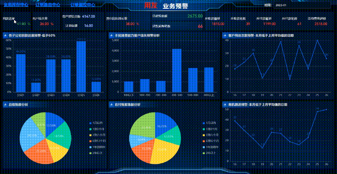 通过监控企业回款、应收账款、客户流失、商机变化趋势等指标,评估业务健康度,优化经营策略,异常情况及时预警,降低业务风险。