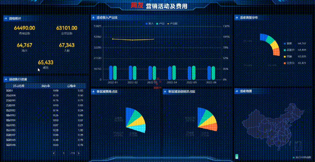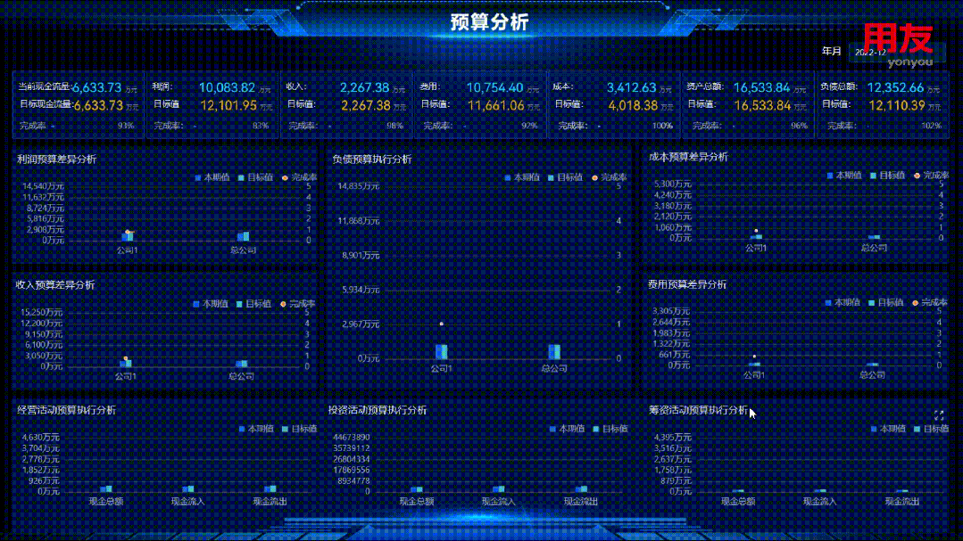 基于企业的预算体系,实时监控成本费用、收入利润、资产规模等指标的预算执行进度,对企业预算工作的执行情况进行考核评价,帮助企业控制成本费用、提高利润水平,同时衡量预算目标有效性,使资源达到最优配置。