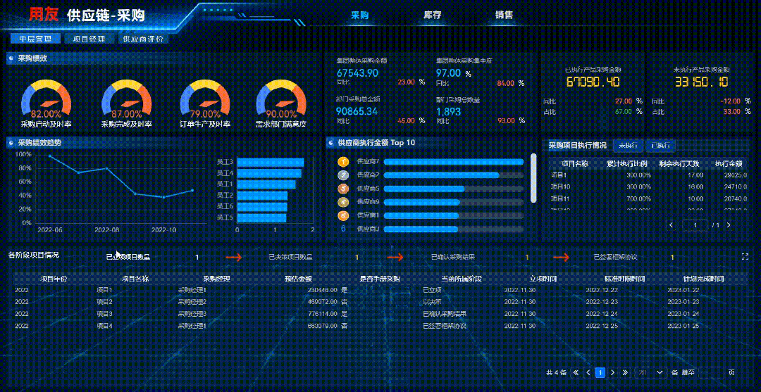 展示采购企业、采购组织各个采购环节执行效率,包括不同类型寻源执行效率和日常采购各环节执行效率,帮助企业科学把控采购流程,推进降本增效。