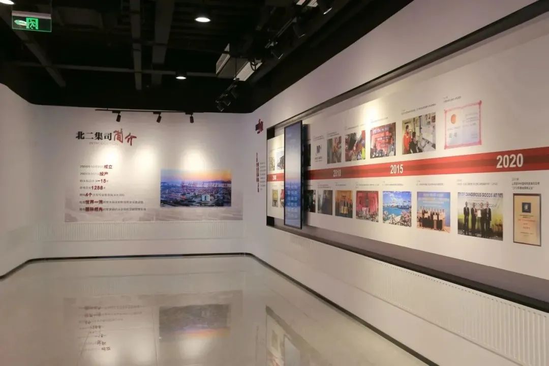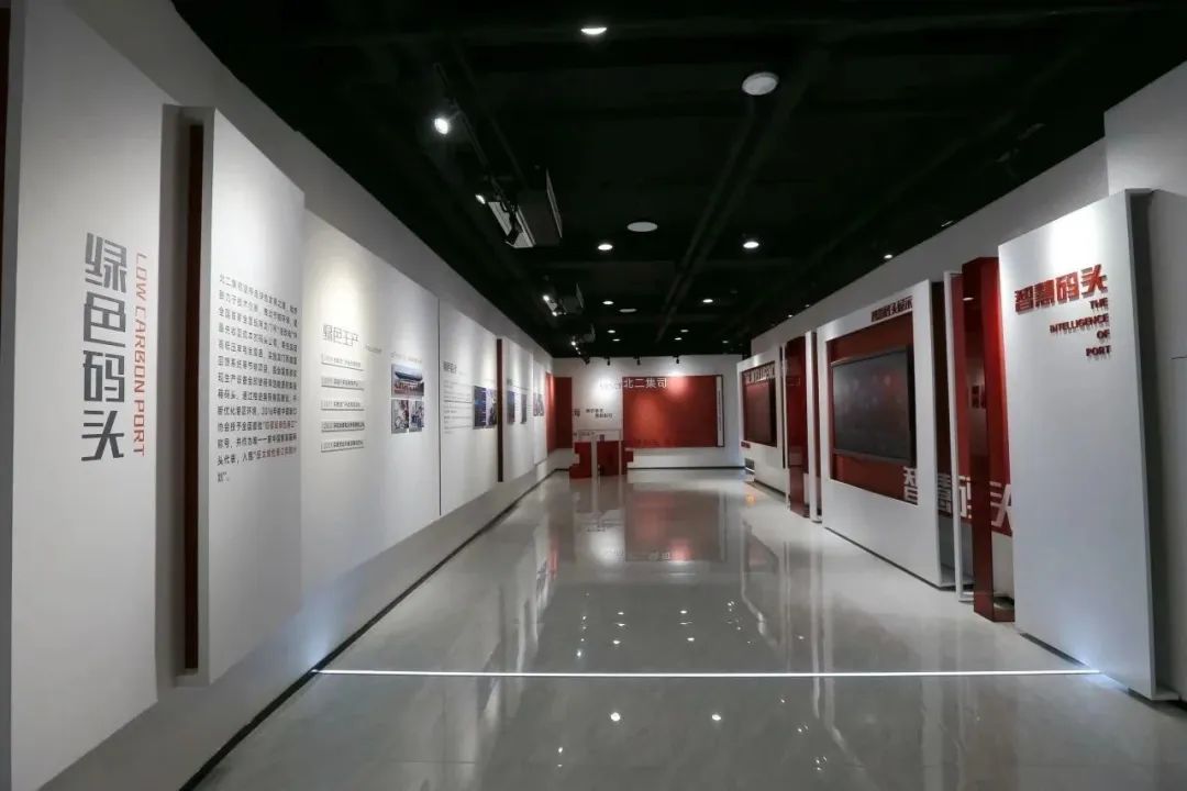 企业文化展厅位于建筑一楼,分为港脉、港力、港魂、港风4个版块,充分展示了公司发展历程、企业文化、中心特色亮点工作、党建廉洁等内容,是党员职工群众汲取“红色营养”、激发“红色动能”的又一处“红色”阵地。
