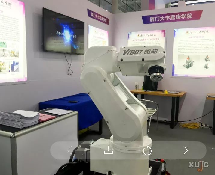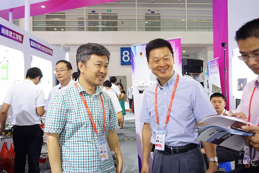 在高校成果展的高等教育综合展区,我校展出的工业机器人控制系统、基于云平台的桌面3D打印机、汉嘉设计创新研究中心投标项目、基于压力传感智能穿戴设备的虚拟现实内容开发项目、五轴CNC设备等项目吸引了各界的关注。现场,不少企业表达了和我校洽谈合作项目的意愿。厦门大学党委常委、校长助理邱伟杰,福建省教育厅科技成果与技术市场处副处长赖登颖等也到场与我校参展团交流。