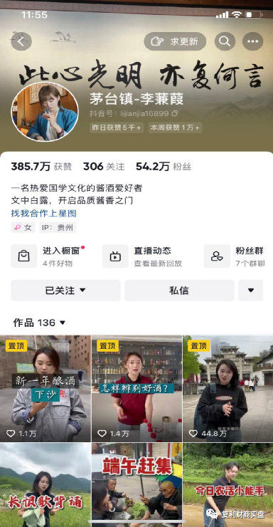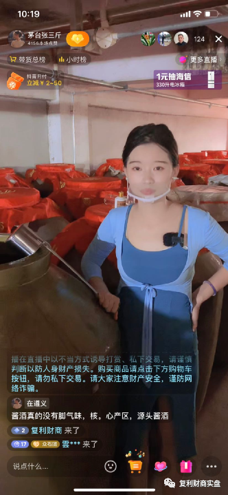 ④茅台张三斤的模式,这个号很多和李婉儿的一样,不知道是抄袭还是一家,他们的模式更加简单粗暴,直接把酒厂直接直播,因为这样更直观,更真实,很多人在喝酒,但源头长啥样大家都不知道