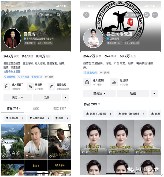 喜贡坊两口子的模式,大IP模式。这两个号一年能卖1000w的货,剧情+直播的模式。
