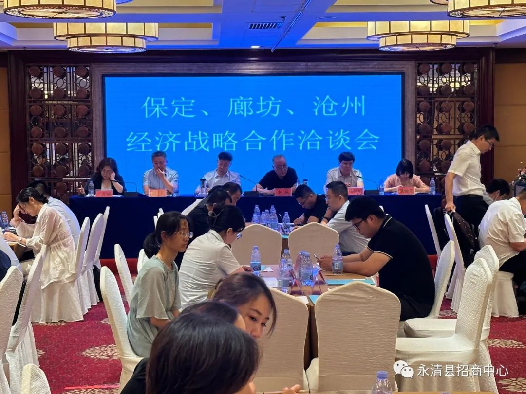 7月6日,永清县金融办、县招商中心赴保定市参加河北融投担保集团风险处置协调领导小组办公室主办的经济战略合作洽谈会,此次活动旨在进一步激发市场活力,以发展引领融投担保风险处置工作,促进经济社会发展,廊坊市人民政府、保定市人民政府、沧州市人民政府及涉融投风险县级主管融投风险化解和招商引资的负责同志、省国资委 26 家监管企业、专精特新、战略投资企业代表等参加了洽谈会。
