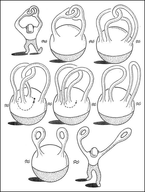 在拓扑学里,重要的拓扑性质包括连通性与紧致性。例如,一个有把手的茶壶连续变化成轮胎,而不是一个球。