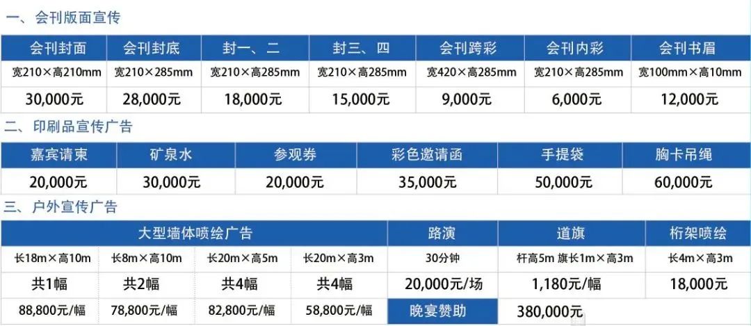 | 豪标展位3×4m | 21000元/展位 | 23000元/展位 | 25000元/展位 |