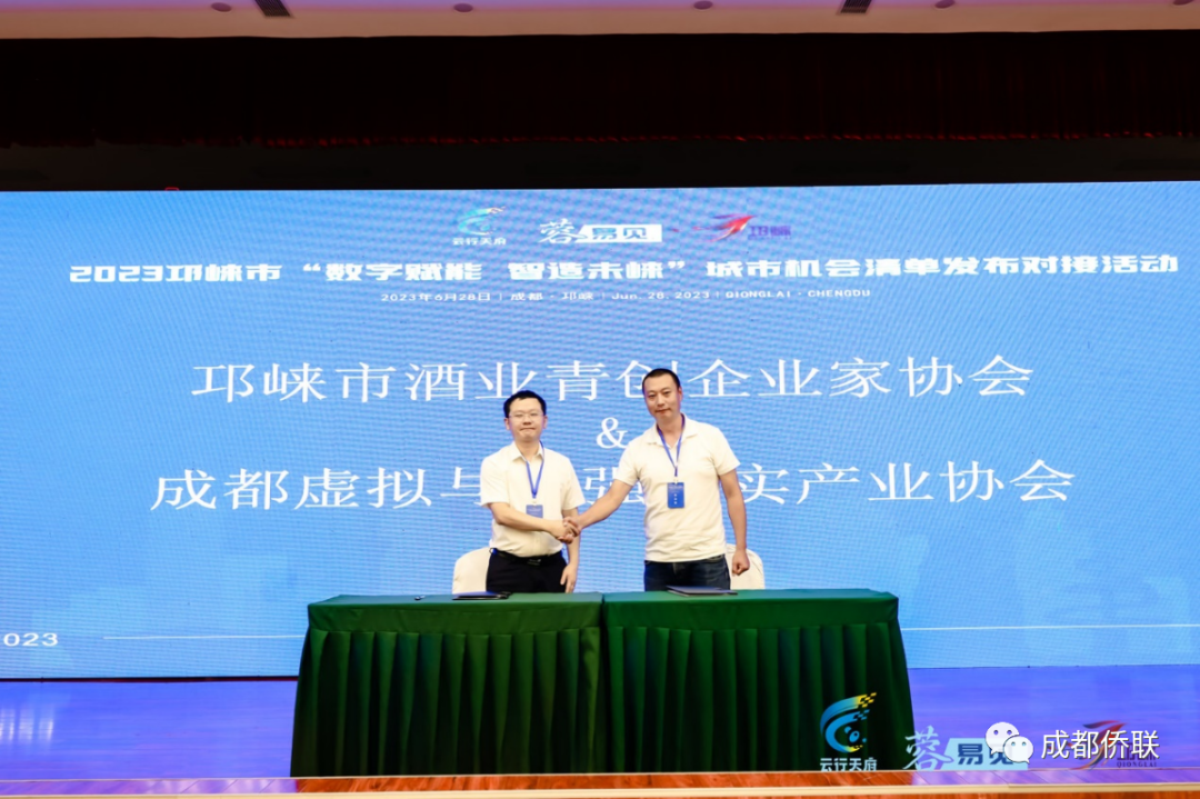 6月28日,邛崃市举办了以“数字赋能 智造未崃”为主题的城市机会清单发布对接活动。邛崃市侨联副主席王鼎代表邛崃市酒业青创企业家协会与成都虚拟与增强现实产业协会签署《探索酒业虚拟与增强现实技术应用战略合作协议》。这一协议的达成标志着两家协会将在酒业领域的虚拟与增强现实技术应用方向展开深度合作,为推动区域经济发展和产业升级贡献了侨的力量、开启了新的篇章。