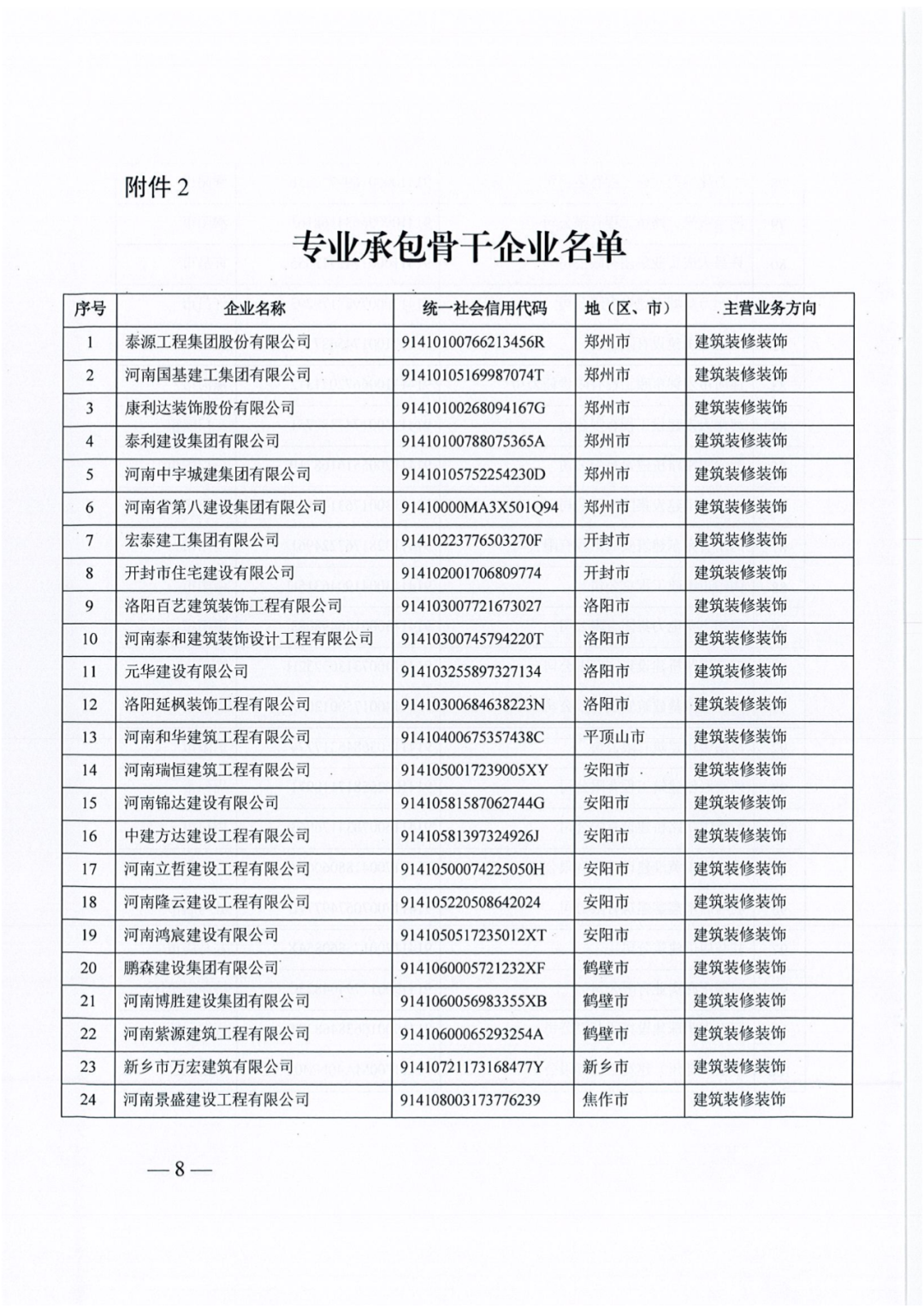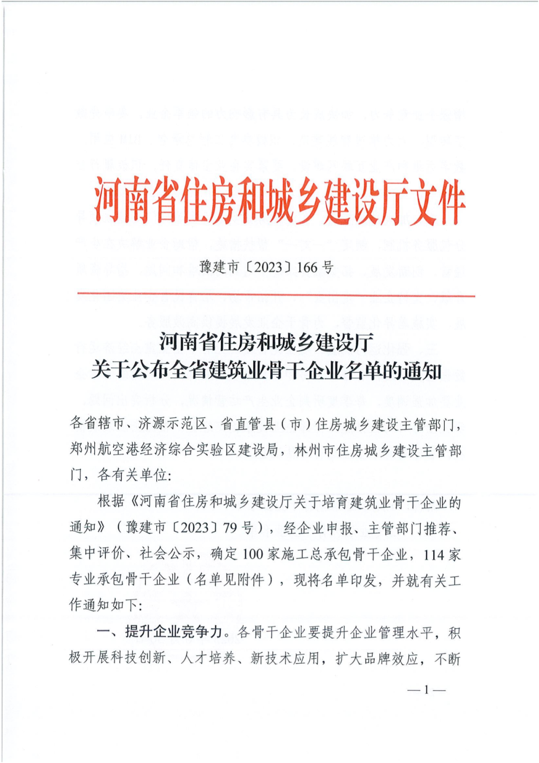 近日,《河南省住房和城乡建设厅关于公布全省建筑业骨干企业名单的通知》公布,在公布的214家全省骨干企业名单中,我市共有5家企业入选,其中,中州建设有限公司、河南省长城建设集团有限公司入选施工总承包骨干企业;弘毅建设集团有限公司 、河南省国能建设集团有限公司、防开建设集团有限公司入选专业承包骨干企业名单。根据此前《河南省住房和城乡建设厅关于培育建筑业骨干企业的通知》等相关政策,入选骨干企业将在评先评优、创优质工程、文明示范工地、示范观摩、试点改革、科技创新、市场开拓等方面享受重点支持。这五家企业的入选,充分肯定了我市建筑防腐企业在创新性发展方面的优秀表现,也是市委、市政府多年来对建筑防腐业发展服务、扶持、引导、激励的结果,龙头骨干企业的培育助力长垣市建筑防腐业健康发展,也将为地方经济的繁荣和社会的发展做出积极引领作用。