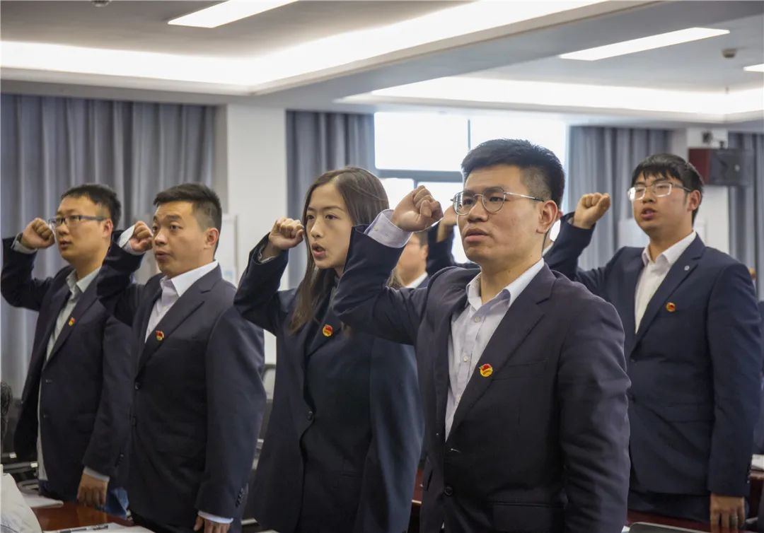 在场团员共同唱响振奋人心的团歌——《光荣啊,中国共青团》,他们重温入团誓词,对话时代,对话自我。
