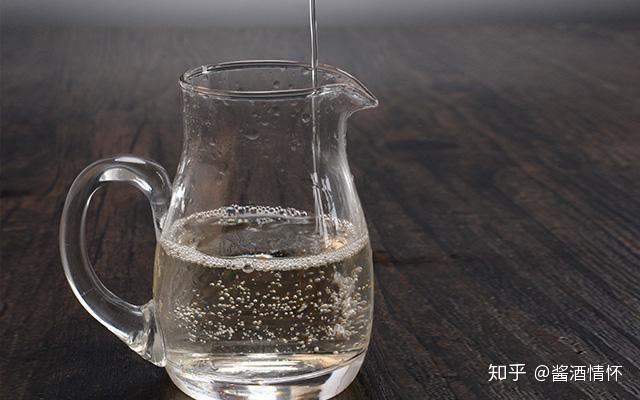 4、加水看变化:纯粮食酒兑水后呈现乳白浑浊,是因为纯粮食酒兑水后酒精溶解度降低后析出乳白色物质,析出的乳白色物质是高级脂肪酸,也就是一种养身营养物质。而酒精勾兑白酒兑水后无变化,是因为酒精勾兑酒的酒体不含粮食成分。