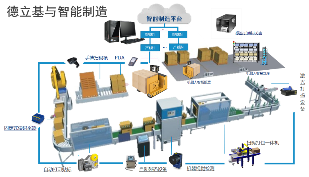 德立基坚持以深化新一代信息技术与制造业融合发展为主线,以智能制造为主攻方向,以工业互联网创新应用为着力点,向产业链下游-工业物联网服务领域转型发展。致力于推动中国制造向数字化、智能化加速转型,为中国经济社会高质量发展服务。为各行业企业的信息化、智能化、自动化改造提供定制化解决方案。产品涉及:产品追溯、防伪防窜货系统;智慧仓储、WMS、TMS系统;各类特种工业标识标签、自动打印贴标系统;工业级智能读码识别终端及其系统应用;智能手持数据采集终端及其系统应用等。