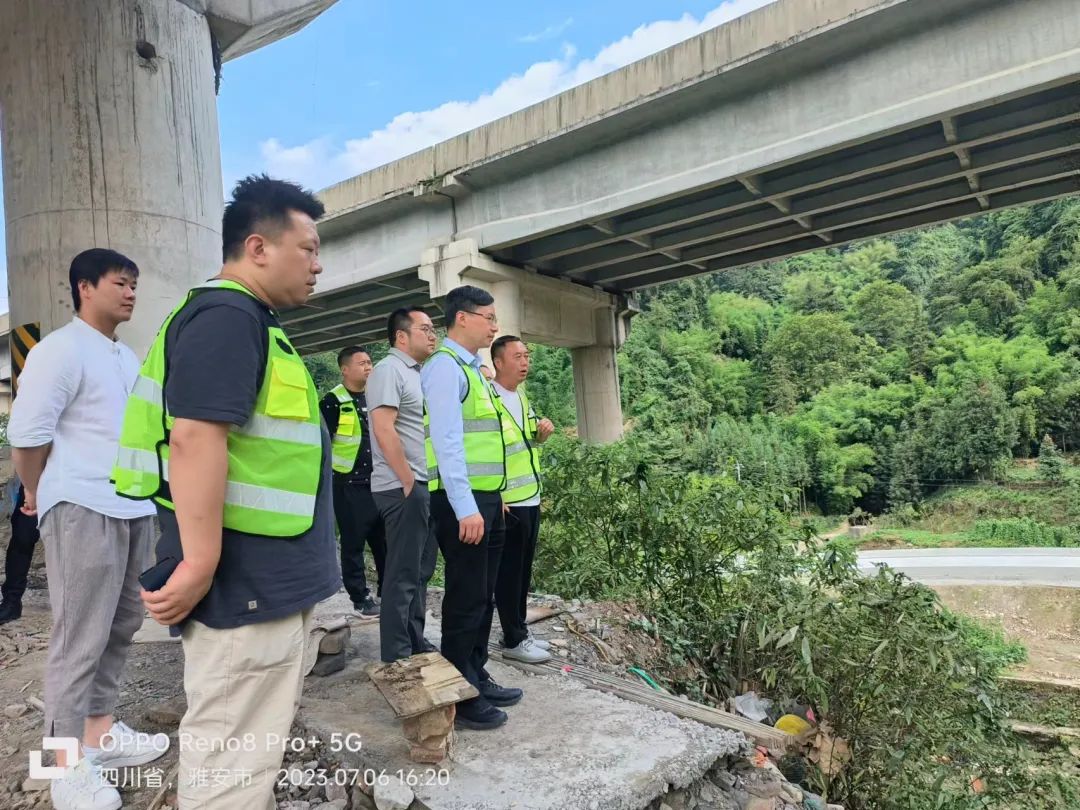 袁飞云带队先后查看了雅康高速升航大桥、大河沟大桥、两路口大桥、李子坪大桥、安乐大桥河等重要点位河道桩基及河道挡防设、两路口隧道口边坡、对岩互通桥下桩基及排洪等情况,并对各个点位的安全防控措施进行指导。